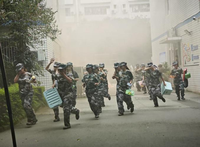 演练严格对照学院《突发公共事件应急处置预案》流程,各部门分工明确、联动高效。信号发出后,新生在工作人员引导下,迅速弯腰捂鼻、低姿前行,沿着指定疏散路线快速移动,以规范有序的状态高效完成全员疏散与人数清点。此次演练不仅检验了学院应急处置预案的可行性,更夯实了安全防护基础,为防范多元化紧急情况筑牢安全屏障。